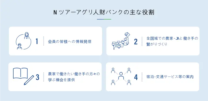 Nツアーアグリ人財バンクの主な役割