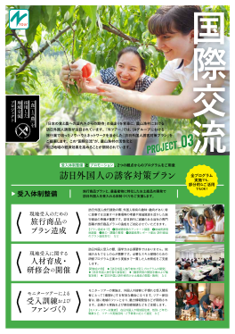 「日本の食と農への国内外からの期待」の高まりを背景に、農山漁村における訪日外国人 誘致が注目されています。「Nツアー」では、JAグループにおける旅行業で培ったノウハウ とネットワークを活かした『訪日外国人誘客対策プラン』をご提案します。この“国際交流” が、農山漁村の活性化と周辺地域の経済効果を高めることが期待されています。