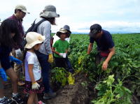次は、松浦農園さんに移動し、新じゃがいもの収穫体験です。