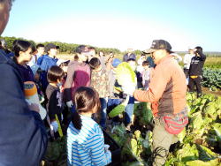 今回は70名にてキャベツ、大根、ゴボウ、菌床しいたけ、白菜、ニン