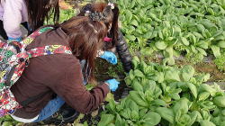 春菊、チンゲン菜を収穫しました。